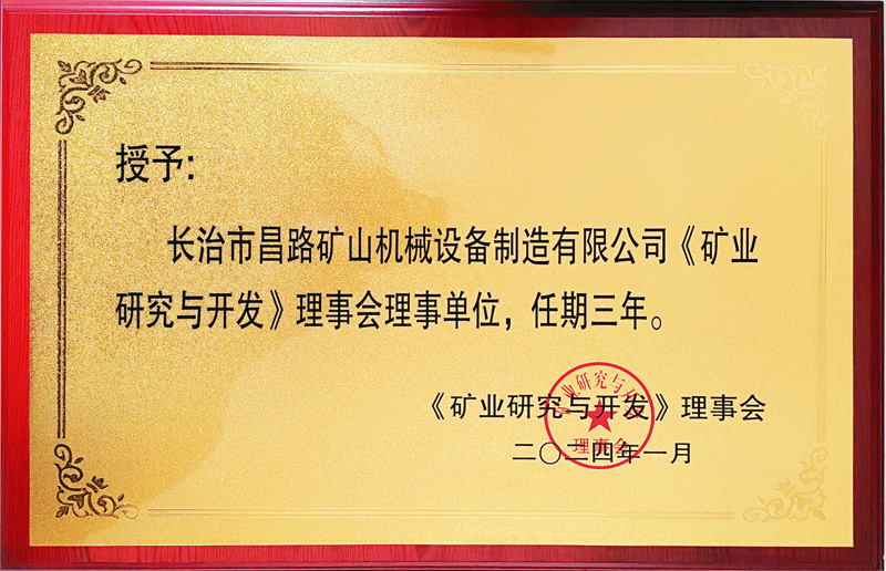 長沙礦山研究院授予我公司為《礦業(yè)與研究》理事會(huì)理事單位